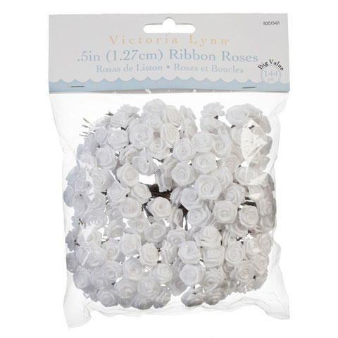 These pretty little red roses made of ribbon have a 1/2 inch wire stem that allows them to be easily added to favors, hair clips and more! Each package contains 12 bunches of 12 stems each. 144 pieces per package.General Information: