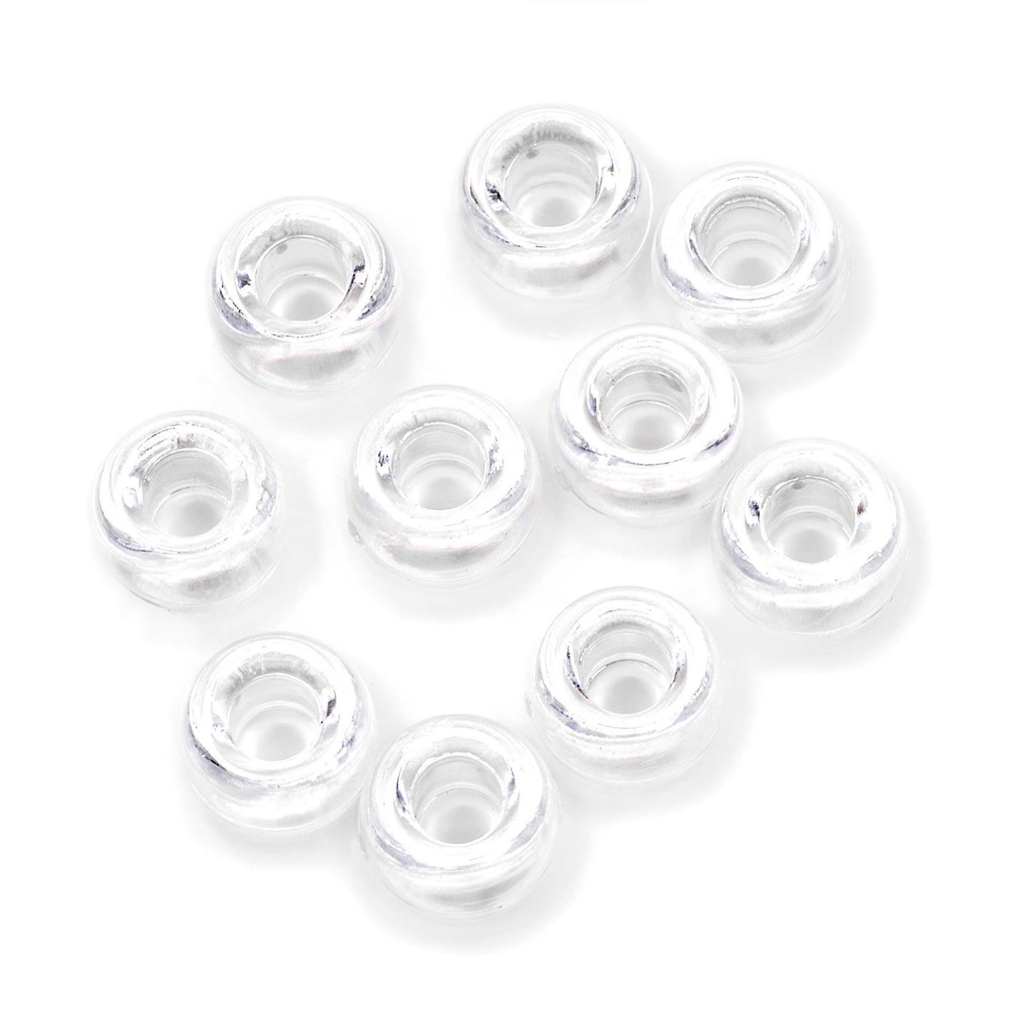 These craft beads are transparent (see-through) in color with tiny specs of glitter in them. Plastic pony beads are great for beading, using as hair beads, for making jewelry, using with kids crafts and more. Pony beads measure 6x9mm with 4mm hole making them perfect for use on thicker cords.General Information: